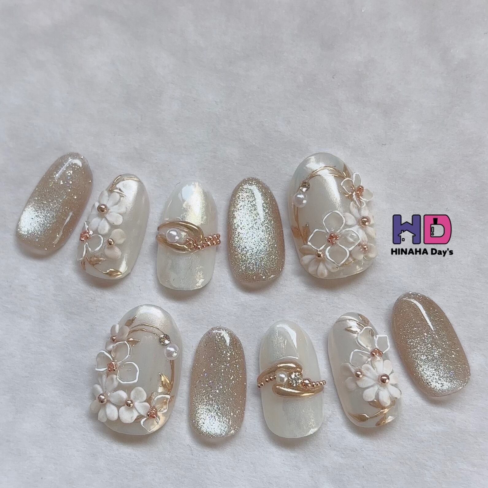 《専用ケース付♡》ネイルチップ/ブライダル/ウェディング/オーダー/3D/花/ベージュホワイト/マグネット/大人可愛い