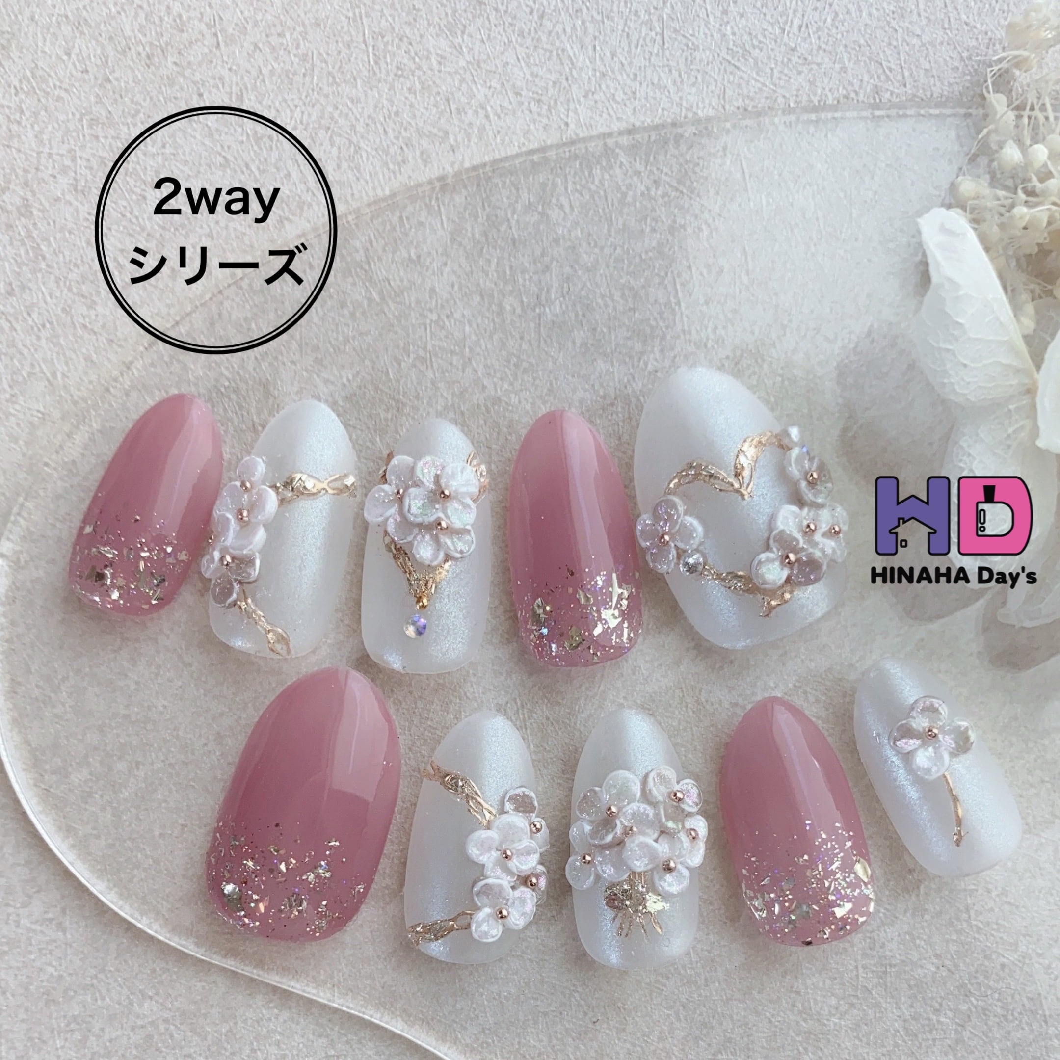 《可愛いケース付♡》16本入 ブライダル ネイルチップ オーダー ホワイト 白 3D 花 ピンク キラキラ ディズニー