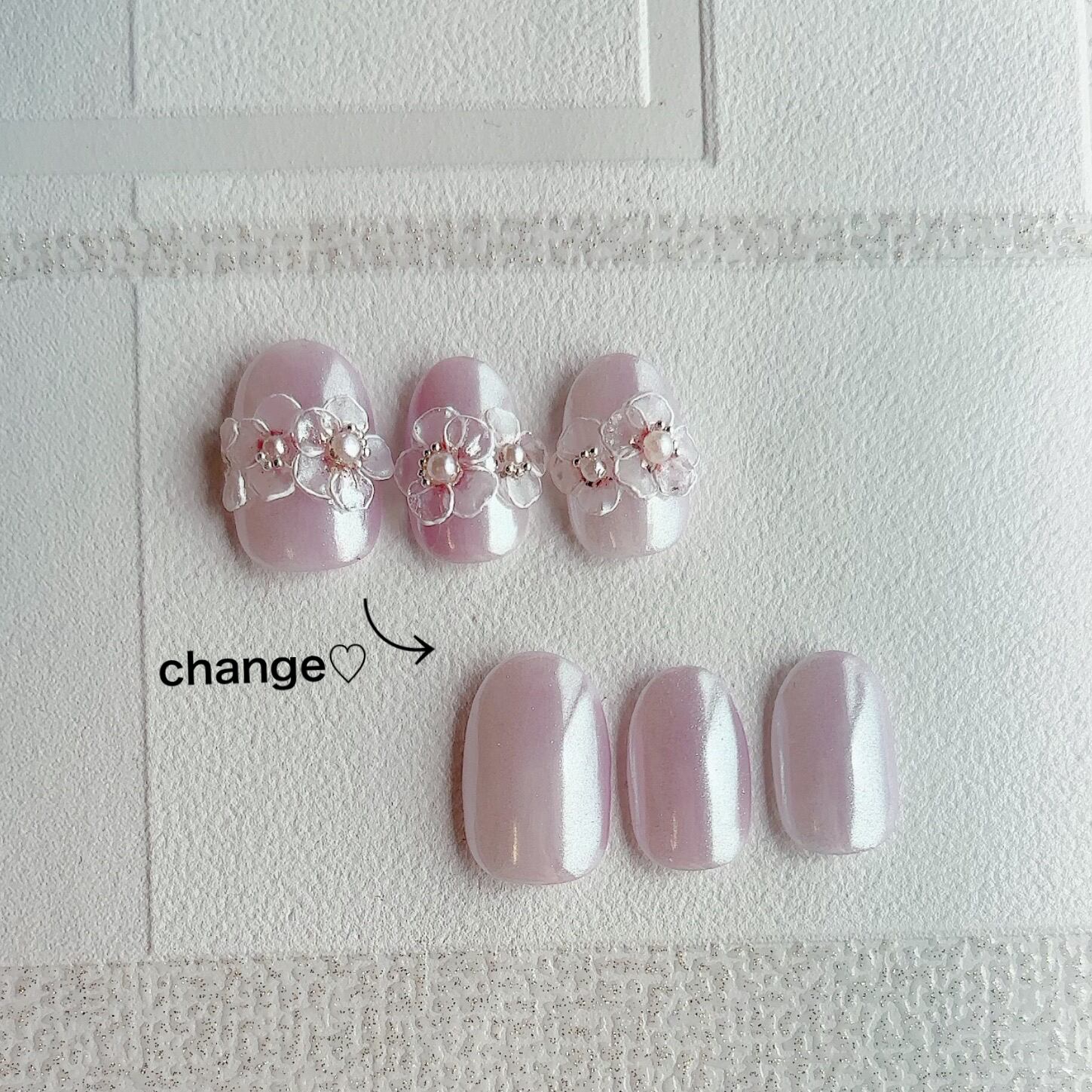 5枚花の可愛らしい3Dは、すりガラス風でレースのお花みたいな感じ♪凹凸も控えめなので、普段使いにもおすすめです。