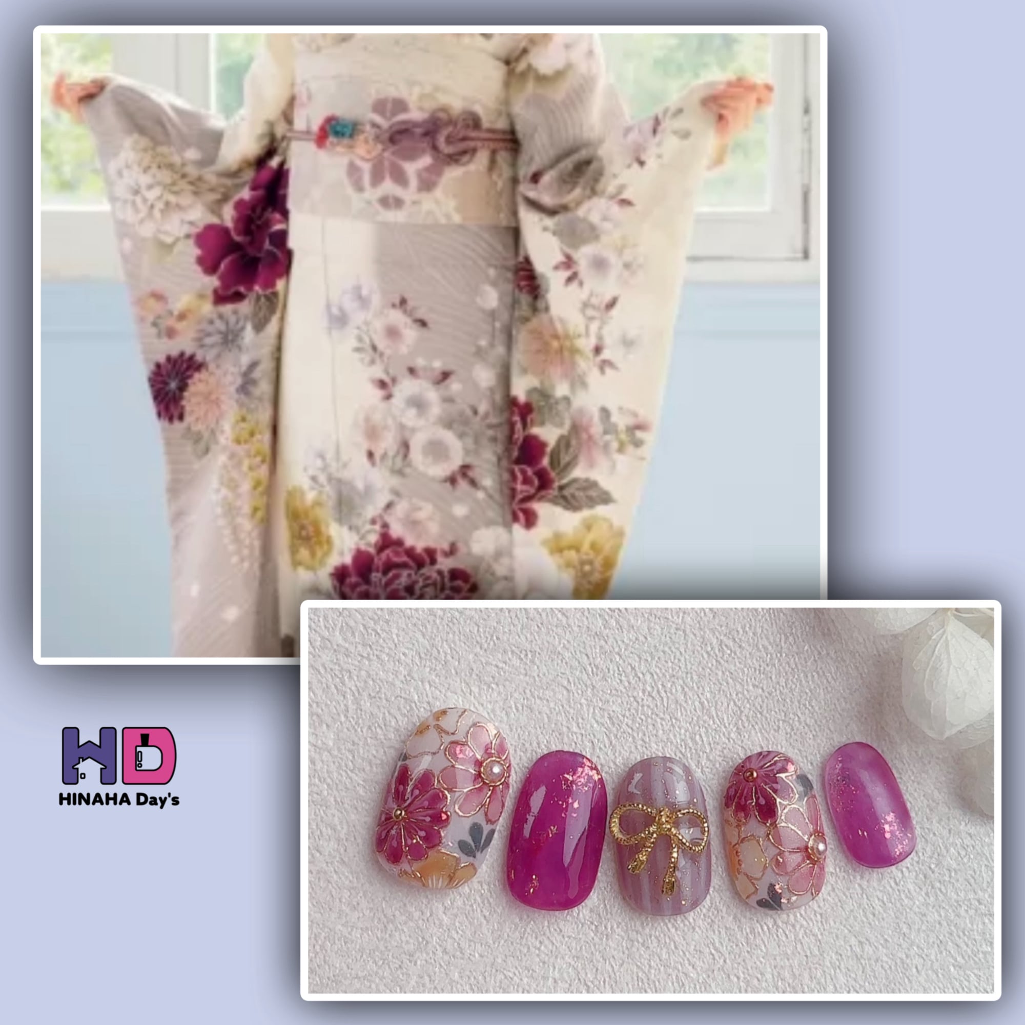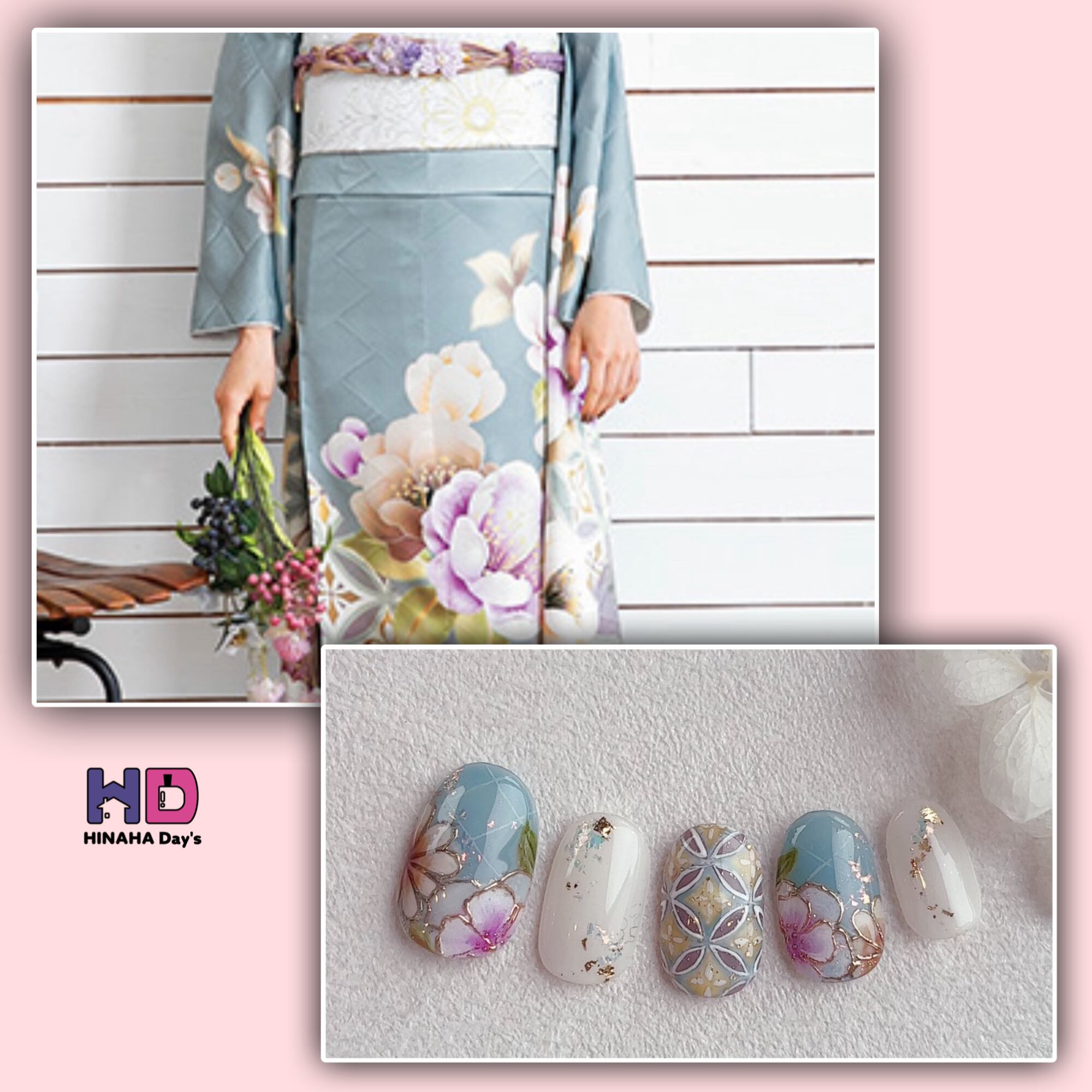 ◼︎①.④は、お着物の色合いに合わせた和花柄デザインになります。