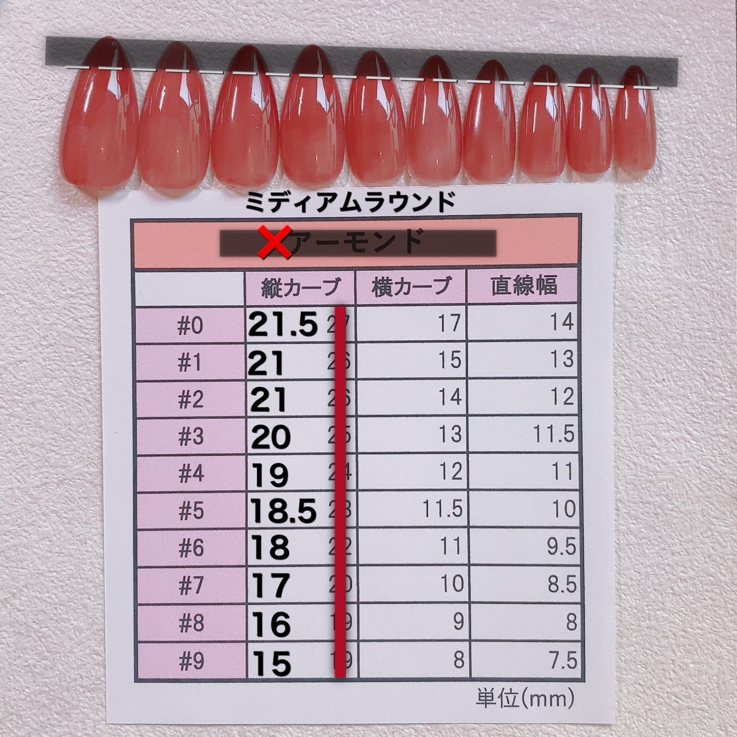 ②選択された親指のチップがほかのチップサイズに比べて、大幅に長い場合は、長さを削る場合がございます。全体のバランスを見て、中指の長さ+2〜3mmくらいで調整致します。←指が綺麗に見えるようにです☆